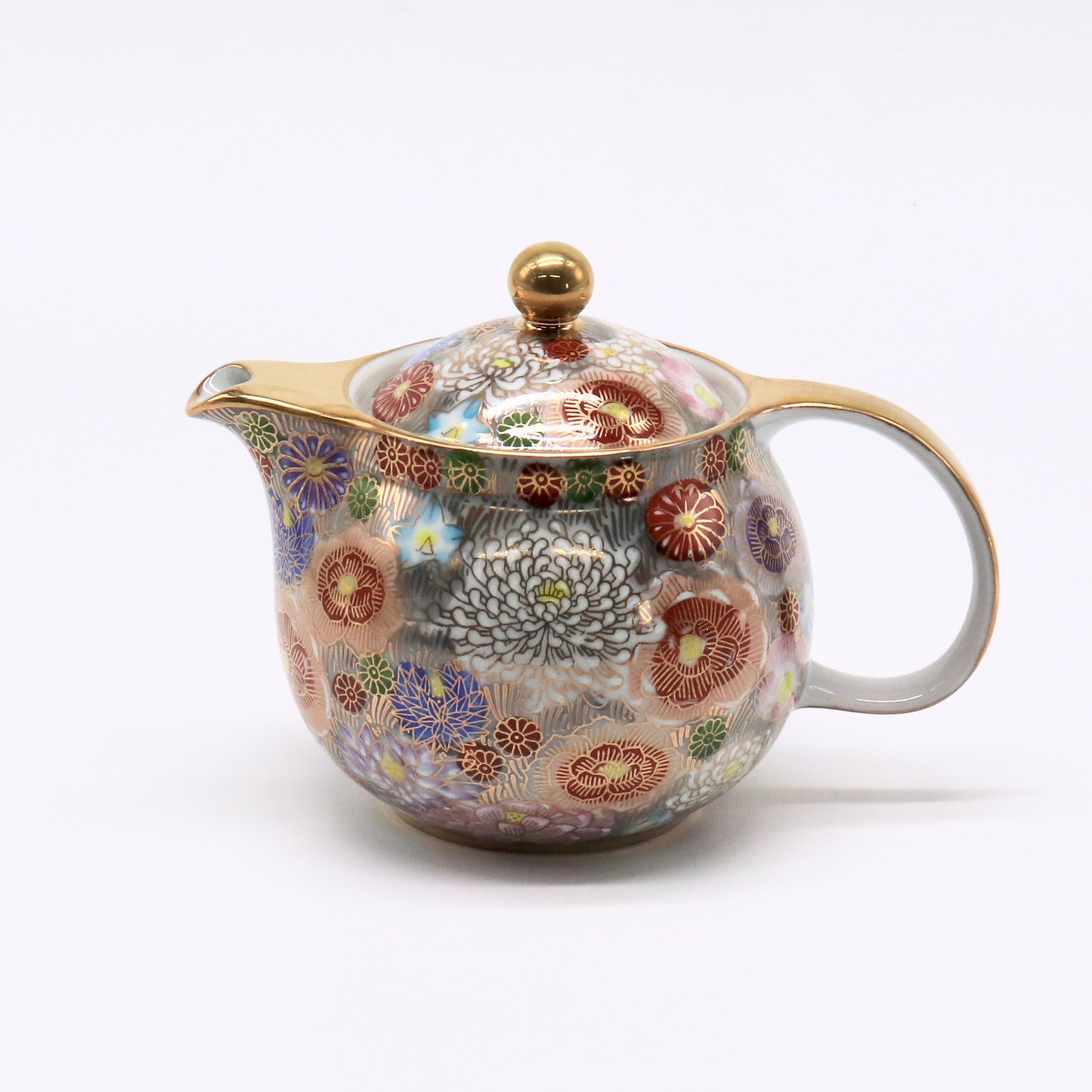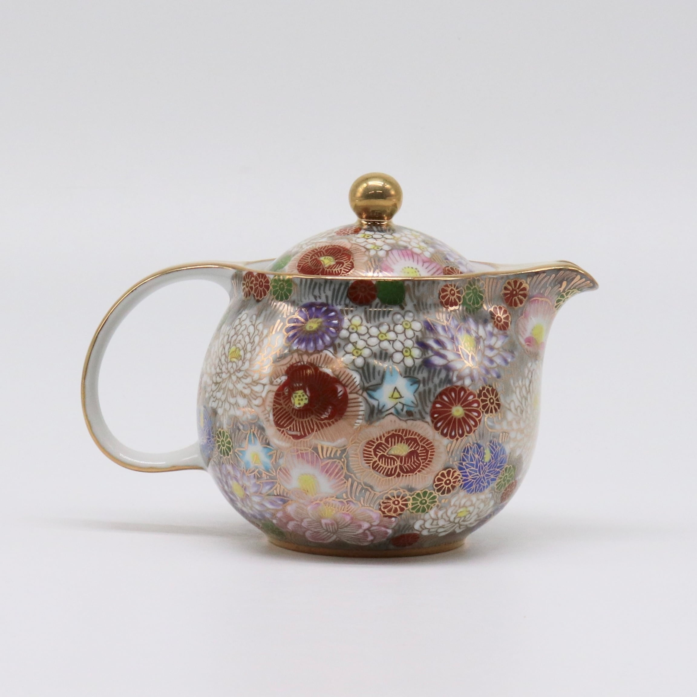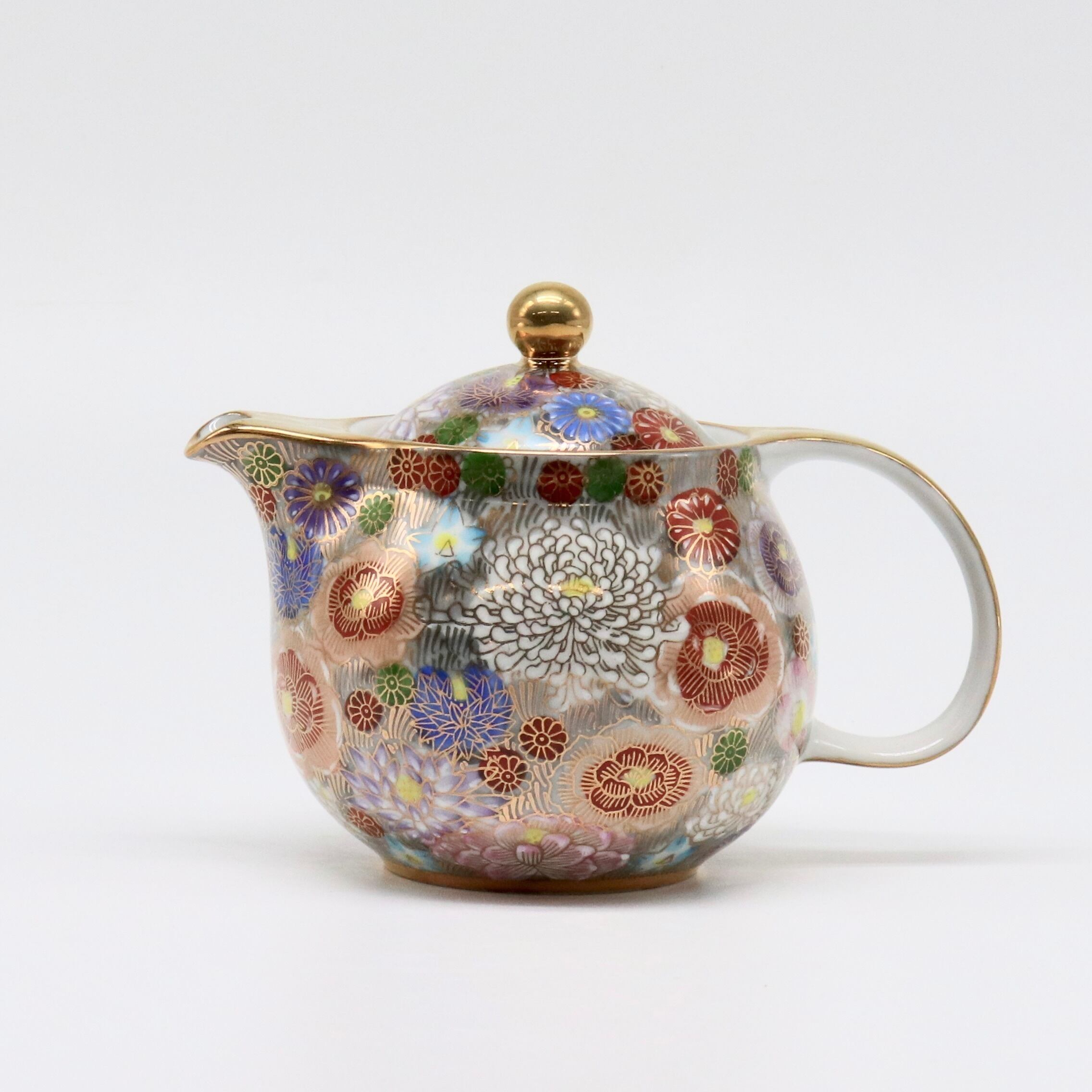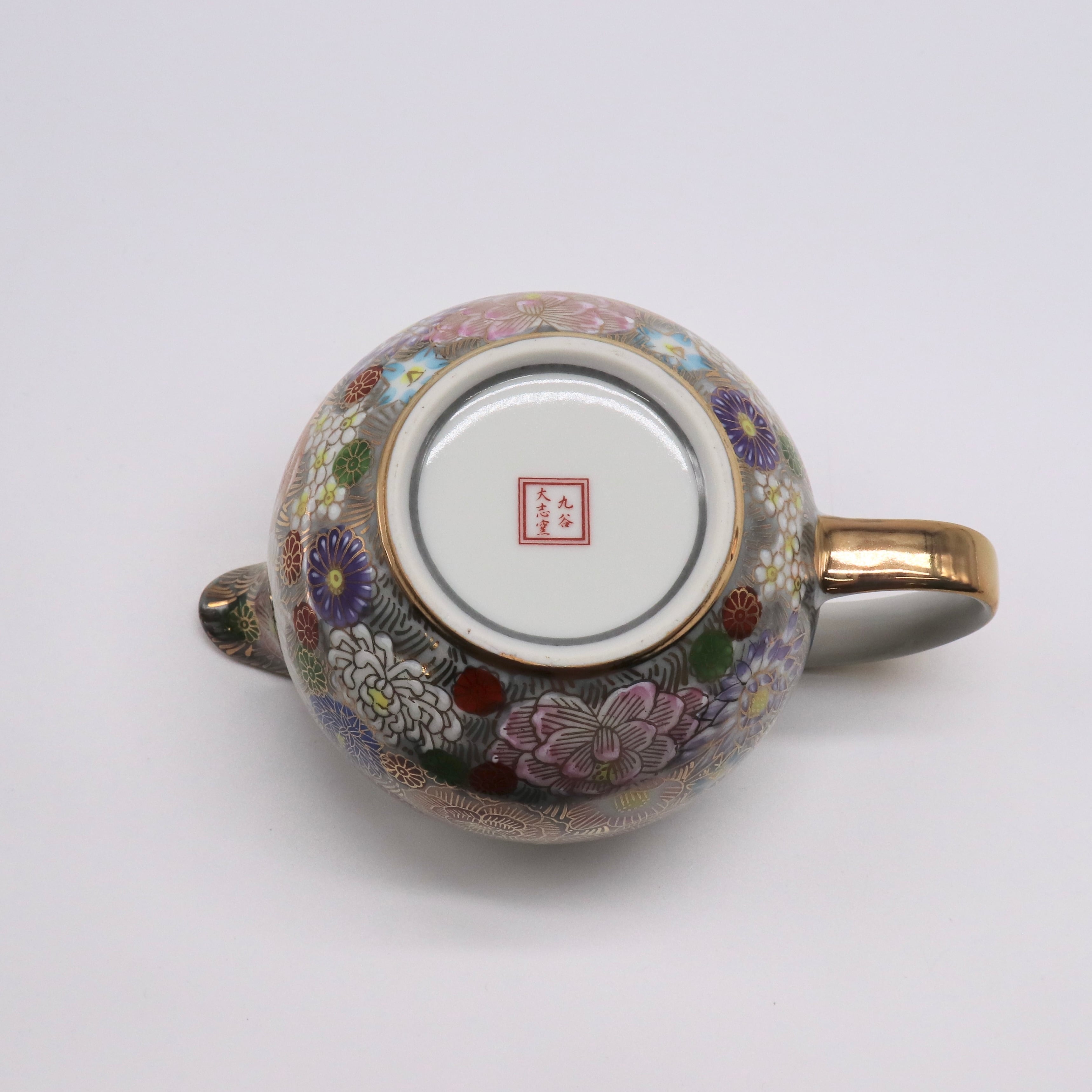 九谷焼 大志窯:金花詰 ポット (淡墨)