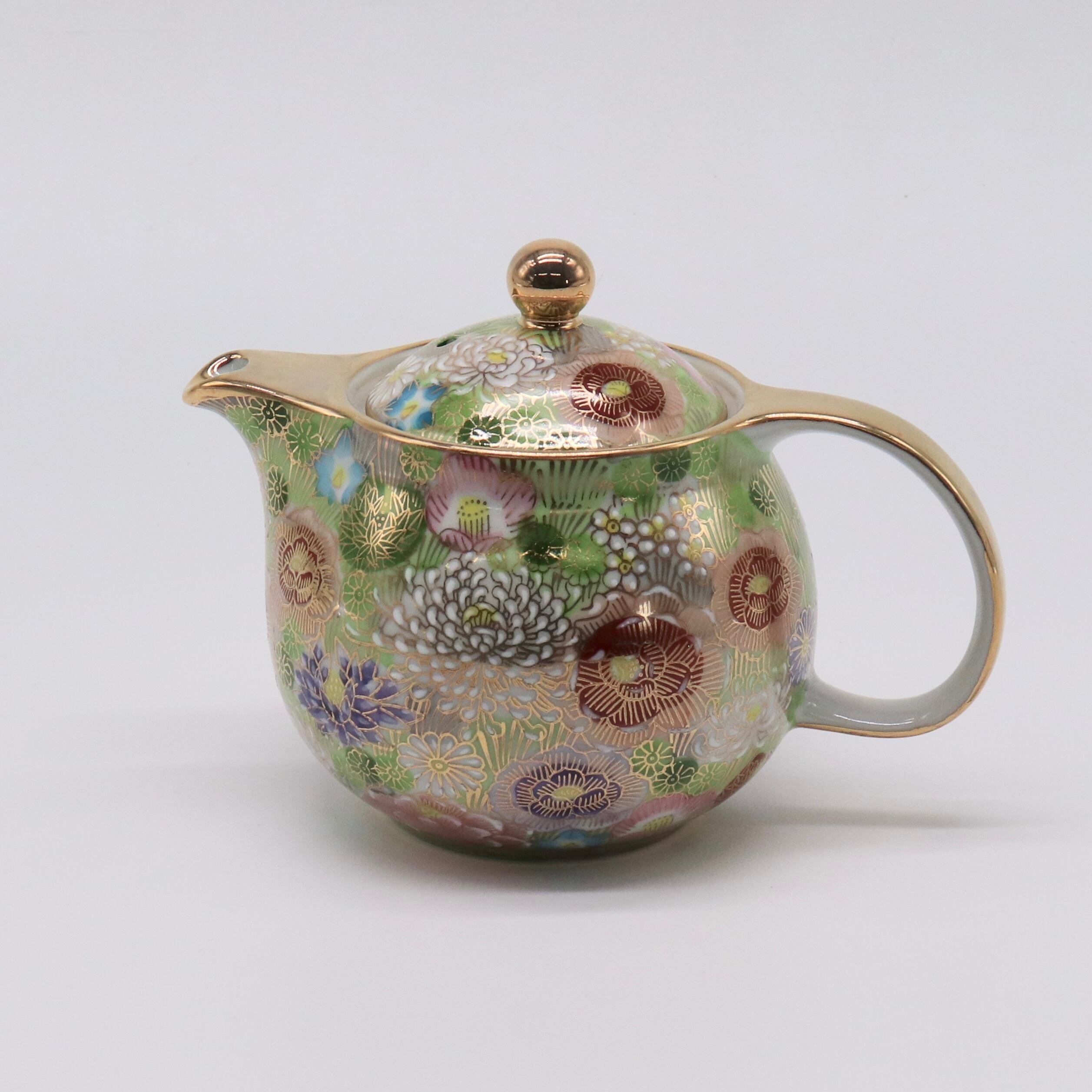 九谷焼 大志窯:金花詰 ポット (若葉)