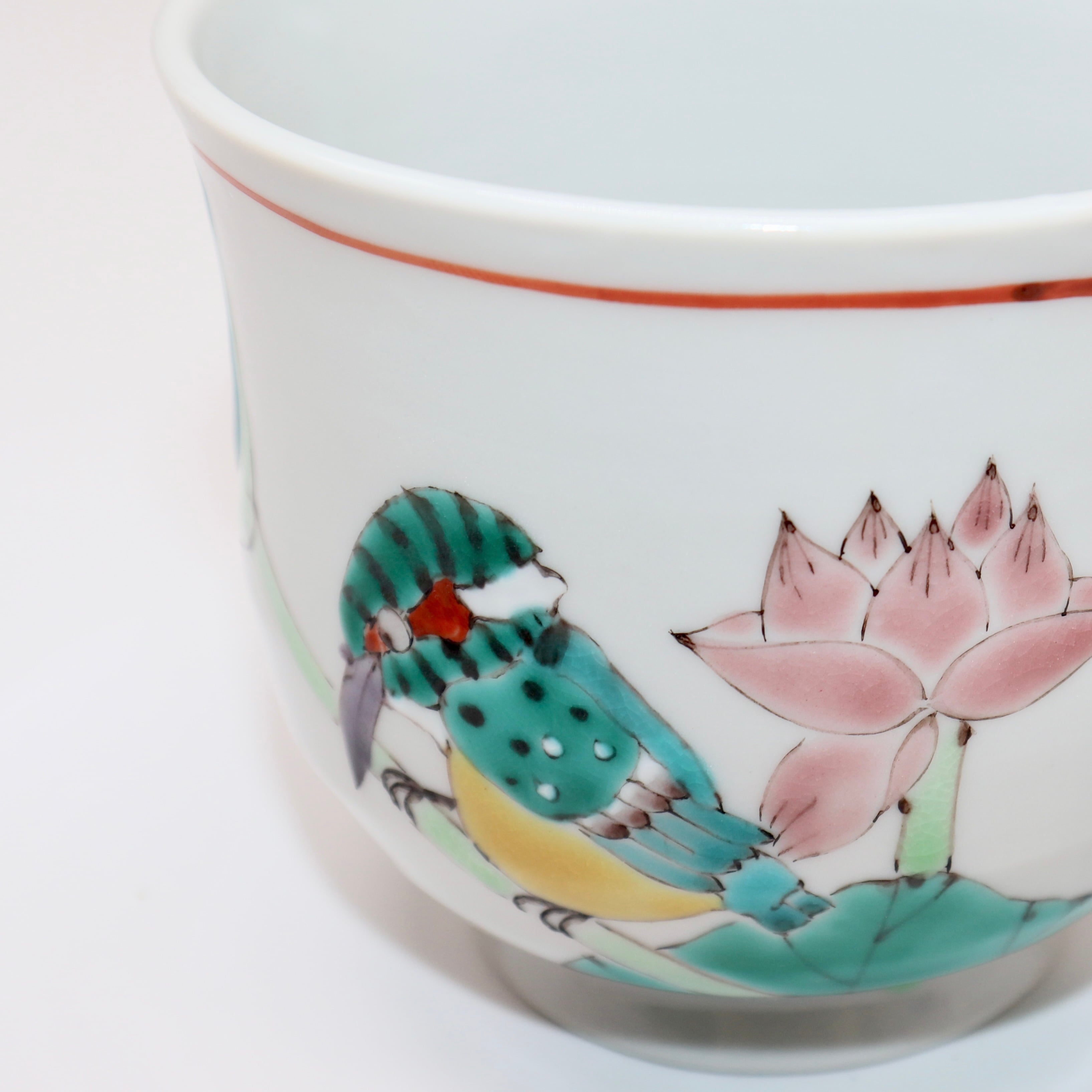 九谷焼 大志窯:色絵花鳥 マグカップ 〜蓮に翡翠〜