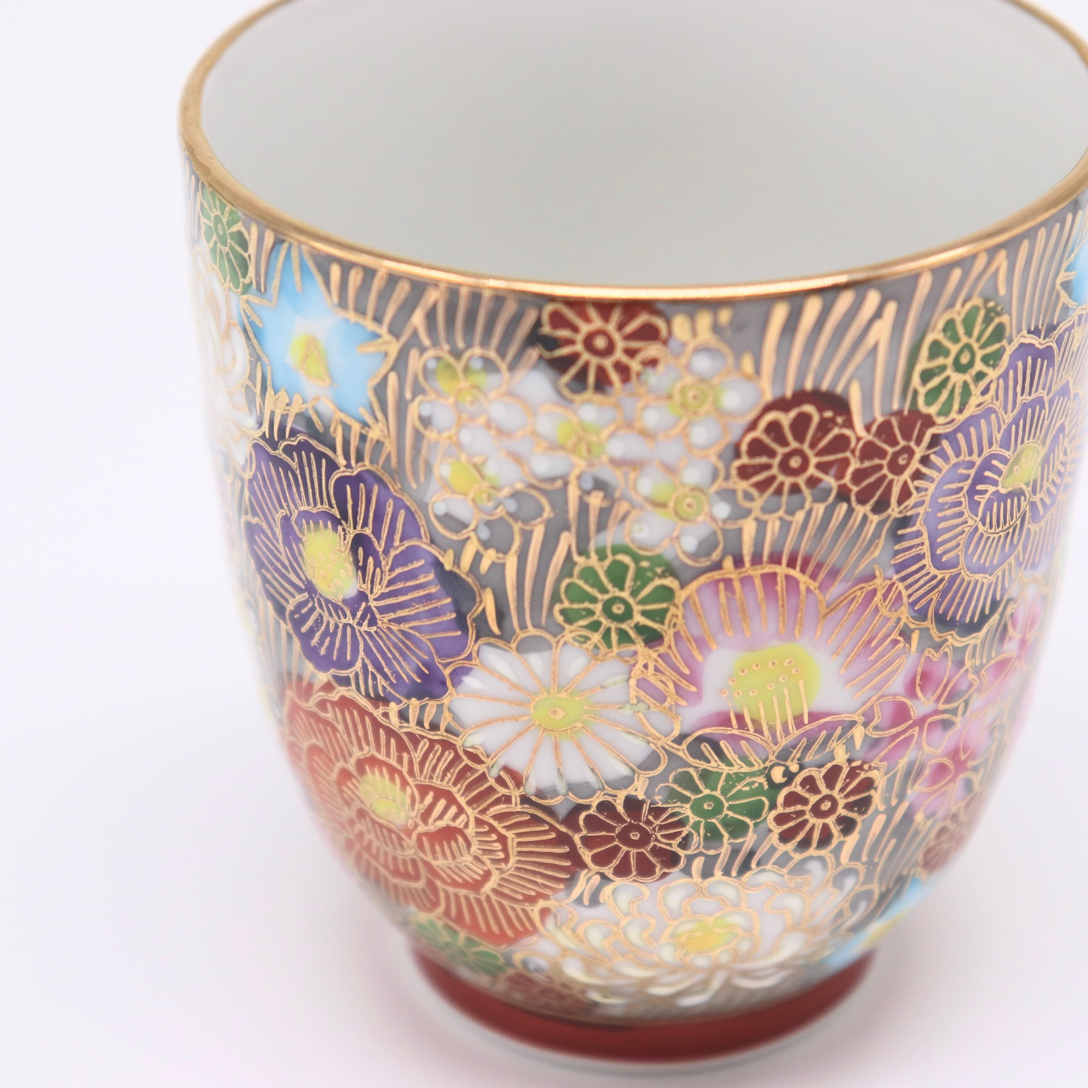 九谷焼の伝統技法「金花詰」を用いて、1つ1つ丁寧に作られた湯呑です。ホッと一息つきたい時に大志窯の金花詰の湯呑はいかがでしょうか。