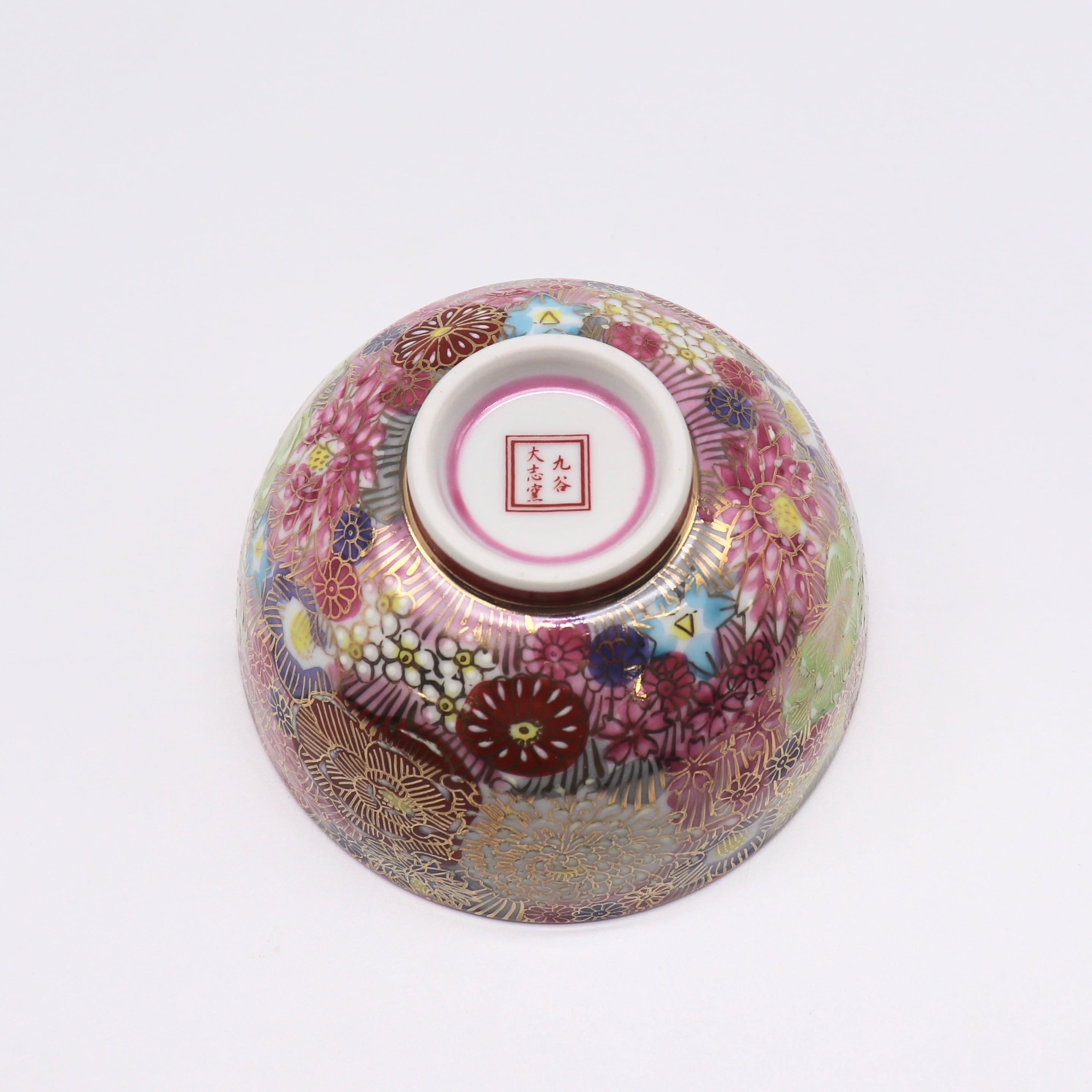 九谷焼 大志窯:金花詰 飯碗(桃)