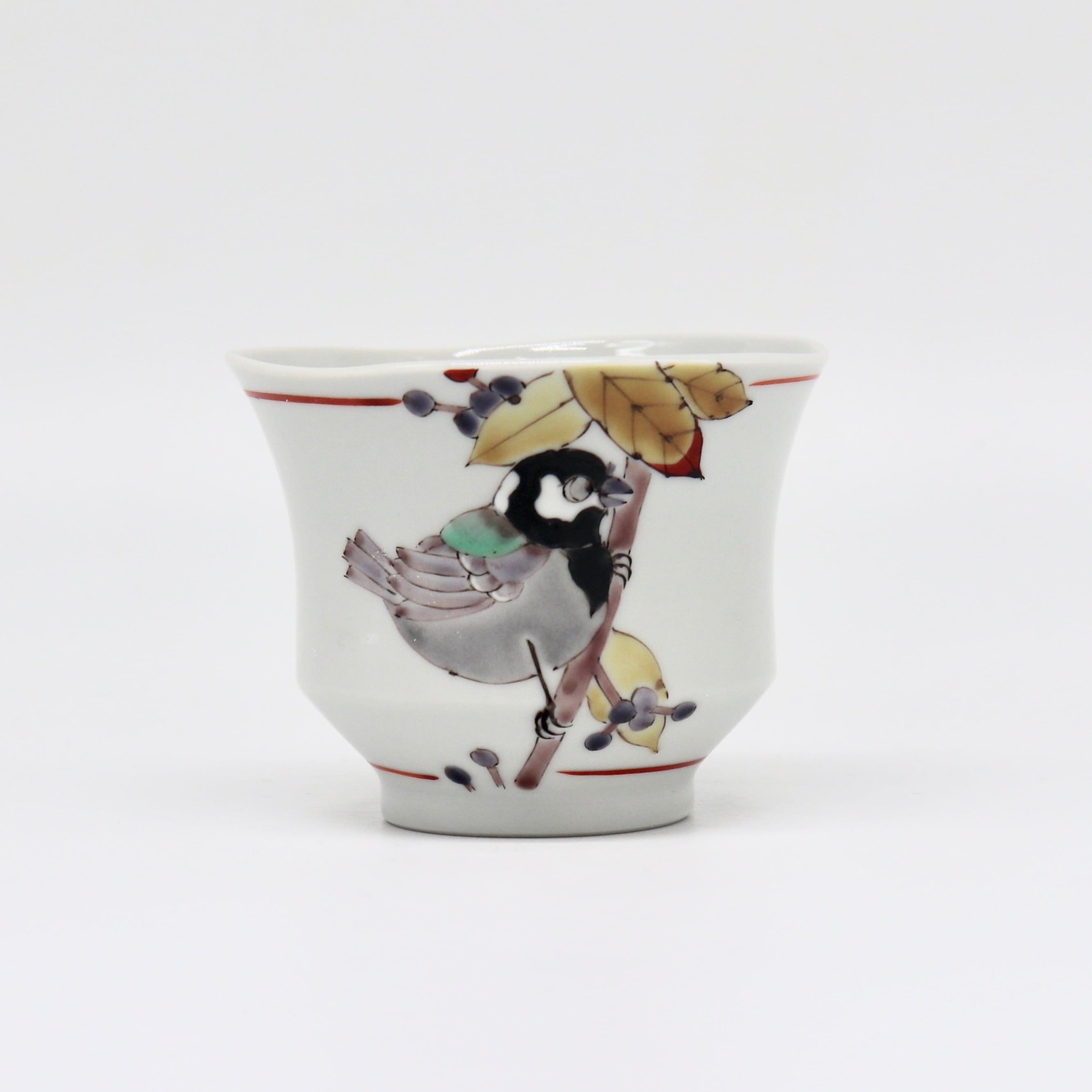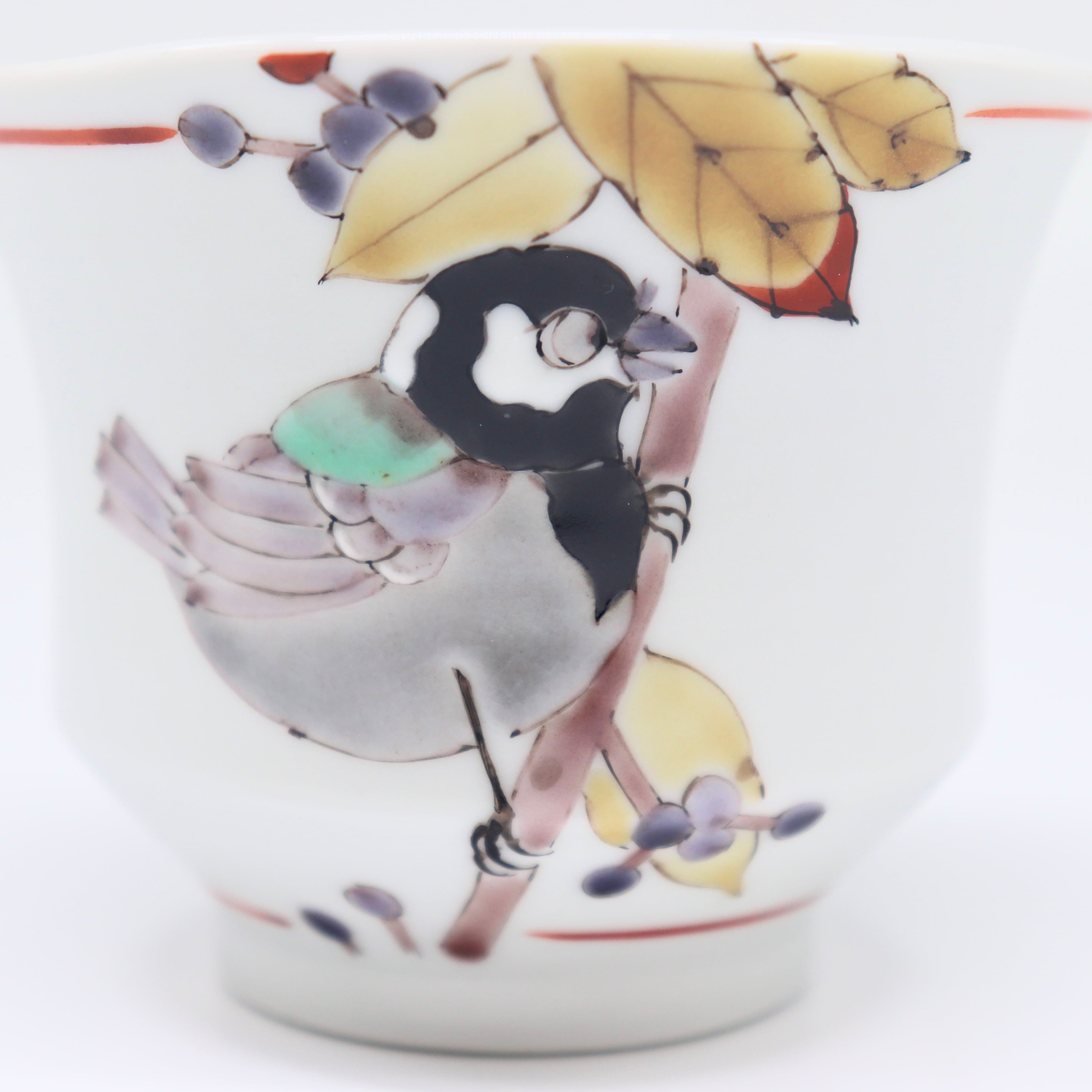 九谷焼 大志窯:色絵花鳥 いっぷく碗 〜紫式部に四十雀〜