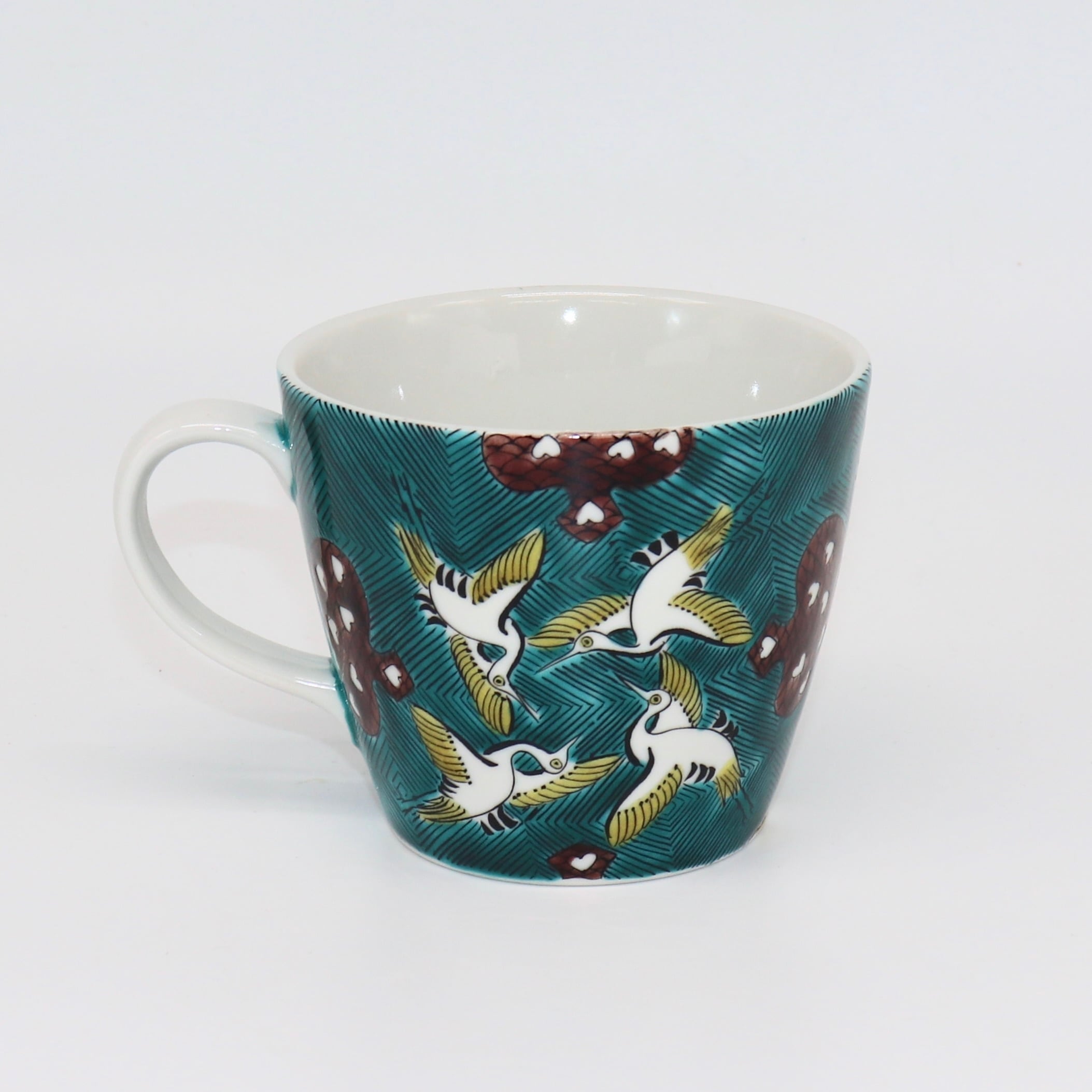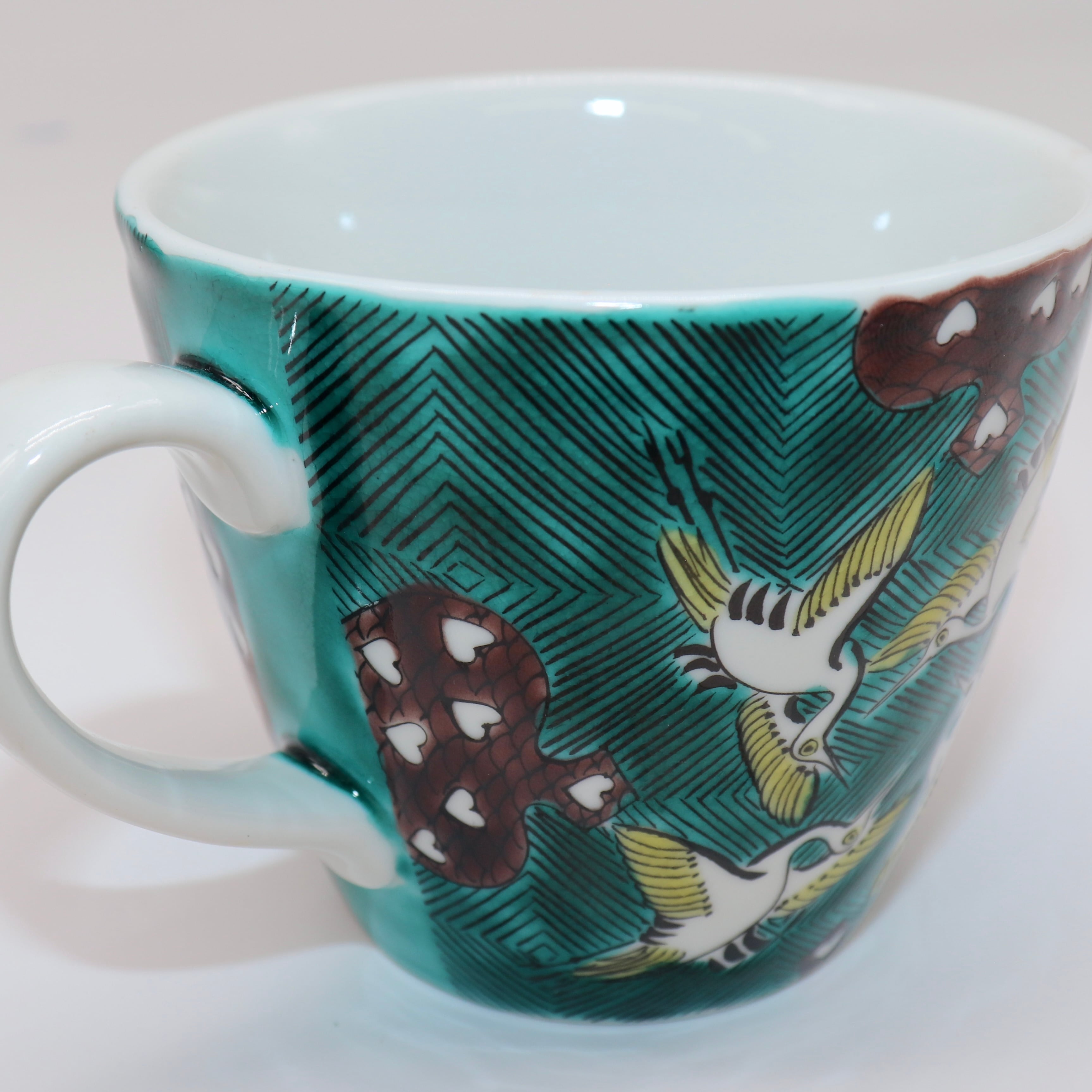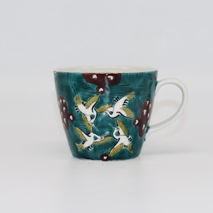 九谷焼 大志窯:マグカップ 古九谷鶴にカルタ